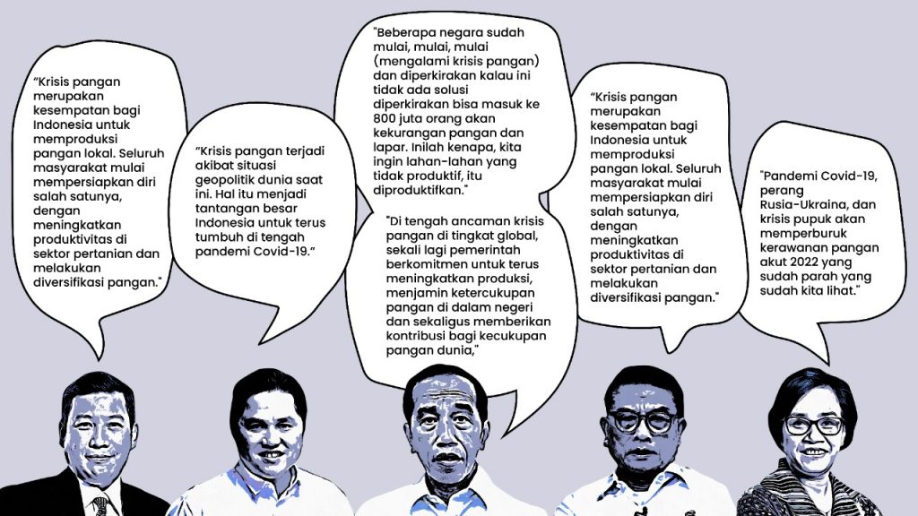 "Beberapa negara sudah mulai, mulai, mulai (mengalami krisis pangan) dan diperkirakan kalau ini tidak ada solusi diperkirakan bisa masuk ke 800 juta orang akan kekurangan pangan dan lapar. Inilah kenapa, kita ingin lahan-lahan yang tidak produktif, itu diproduktifkan."