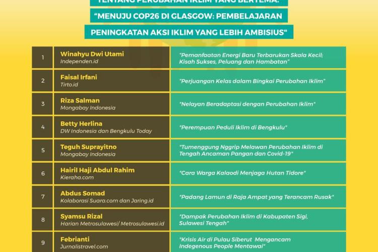 Pergerakan isu lingkungan, perubahan iklim, net zero energi, dan semua area dalam isu lingkungan perlu diperdalam untuk membuat setiap tulisan atau karya jurnalistik yang dilaporkan terasa 'bernyawa.'