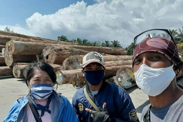 Banner Image : Febrianti, Ores dan Bambang Sagurung di lokasi logpon HPH di Pantai Tiniti. Dokumentasi pribadi Febrianti