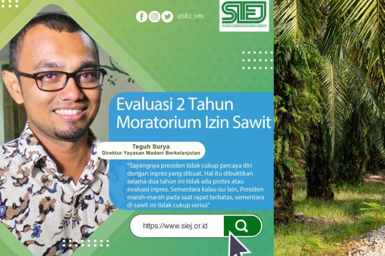 Koalisi masyarakat sipil melihat instruksi yang ditandatangani September 2018 ini menjadi sesuatu yang tidak serius dalam menjalankan moratorium. The Society of Indonesia Enviromental Journalism (SIEJ) mewawancarai Direktur Yayasan Madani Berkelanjutan, Teguh Surya untuk mengetahui perkembangan dua tahun moratorium sawit di Indonesia. Simak hasil wawancara kami berikut ini: